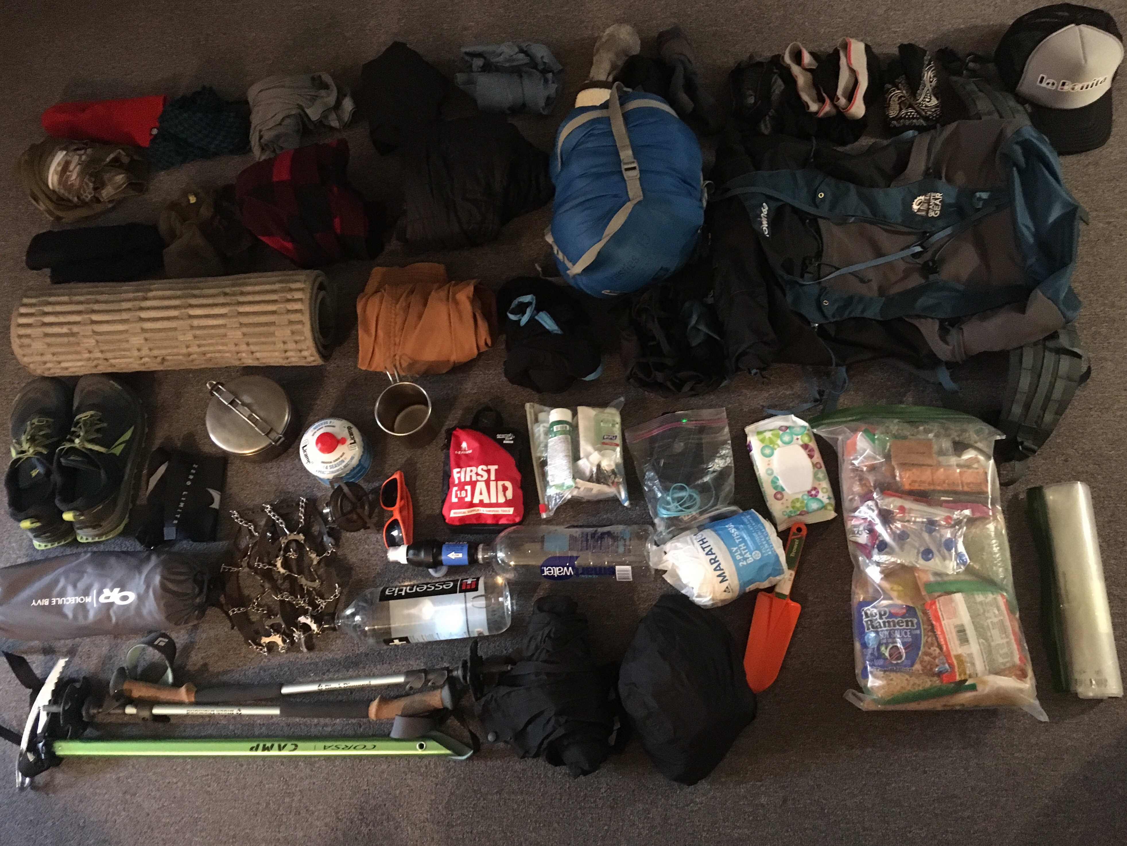 This is what I’ll be heading out with for the first week of hiking the pacific crest trail. I will be starting on June 26th at the northern terminus, the Washington/Canada border, and heading Southbound towards the southern terminus, the California/Mexico border. Food, toiletries, fuel, first aid, batteries, etc. will all be resupplied at stores and post offices in town along the way. Water will be replenished and filtered at water sources along the trail. The rest of the gear should remain with me for the duration of the 2,650 miles. Except for shoes. Shoes will need to be replaced at least once a month or every 5 or 6 hundred miles, whichever comes first. If all goes well I should be finished hiking the trail by mid November.